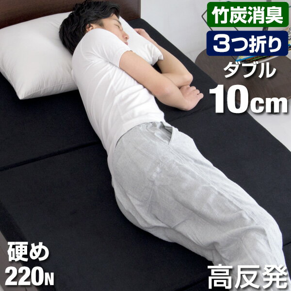 ▼男の高反発マットレス サイズ違いもございます▼ シングルサイズ セミダブルサイズ クイーンサイズ キングサイズ 仕様サイズ外寸:幅140x長さ195x厚み10cm重量:9.5kg(中芯重量8.1kg)【スタッフみどぅのおすすめポイント!】 ・寝汗による嫌な臭いを消臭する竹炭を練り込んだマットレス ・適度な反発力で寝返りをサポートする、腰に優しい高反発・厚みたっぷり10cmで、1枚でも底付き感のない寝心地 ・取り扱いやすい3つ折りタイプ ・硬め225N ・安心の低ホルムアルデヒド0.008ppm ・ISO9001認可工場による安心の品質 ・ウレタンフォーム本体の臭いを軽減する除臭加工済 ・反発弾性30%以上 寝ている間の嫌な臭いを消臭!竹炭をウレタンフォームに練り込んだ高反発マットレスです。