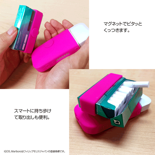 本体サイズ:36g 重量:(高さ)5cm×(幅)4cm×(厚み)3cm 素材:シリコン、磁石 備考:機能的iQOSシリコンケース 毎日使うものだから便利にしたい想いから誕生しました。